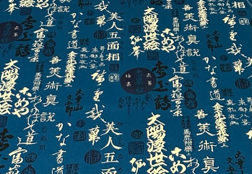Cream and black Asian letters/characters on blue with Navy Accents